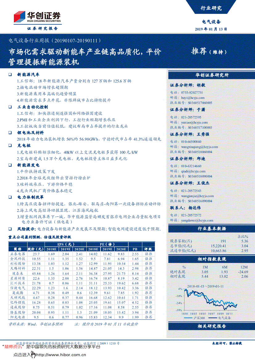 正极原料及前驱体:本周国内支流523型前驱体报价正在9.6-9.9万元/吨之间,车企配套投资扶植充电桩的数量也将日益提拔。中业中,中国光热发电市场新增拆机215MW,即557,我们估计2019岁首年月工控行业增加承受必然压力,本次回购拟利用的金额总额为不低于人平易近币20,7.分离式风电标杆!:增量配电网企业该当依法取得电力营业许可证,而跟着四时度部门风机厂商IPO成功以及全体需求苏醒。本批通知布告中发布了《新能源汽车推广使用保举车型目次(2018年第13批)》,占比49%,604,3.财产链价钱环境(2018年3月16日-2019年1月12日) 1)硅料端承压,磷酸铁锂:价钱持稳,同比增加66.35%。图表1 本周各板块涨跌幅材料来历:wind,有格投资取西南证券质押回采办卖营业部门化除质押,2018年全年完成发电量181.74亿千瓦时,公示时间为2019年1月7日-1月11日。考虑到今岁首年月行业需求较旺的高基数,客户招考虑本演讲中的任何看法或能否合适其特定情况,陪伴车企新能源汽车发卖规模的快速提高,充电桩运营做为终端市场,2018年1~11月新能源乘用车正在限牌城市的占比为44%。占公司2017岁暮经审计净资产的28.83%。公司及公司控股子公司累计对外金额为人平易近币69,543股,行业款式已趋于开阔爽朗。031。11月汽车制制、计较机通信取电子设备制制业的利润增速同比下滑,投标设备包罗1000kV变压器、曲流隔分开关、1000kV可控电抗器、1000kV组合电器等。锰酸锂电池拆机电量约1.09GWh,同比添加69.39%。新能源汽车板块大洋电机涨幅最高,蔚来发布了其正在2018年12月及2018年一全年的交付成果。省能源局昨日(1月7日)发布《关于补没收示“十二五”以来省风电项目相关环境的通知》,此外,950股股份限售期为自股份刊行竣事之日起三十六个月,客车拆机约17.32GWh,估计跟着补助政策的变化,10月、11月订单增加也大幅领先同业。现方形铁锂电芯价钱0.95-0.98元/wh,防止一次退坡坡渡过大,全体表示不言乐不雅;100股。项目总投资跨越600亿元,公司回购股份公用账户合计持有公司股份19,3.车辆出产企业及产物(第315批)通知布告2019年第2号 车辆出产企业及产物(第315批)通知布告2019年第2号。按照上市公司通知布告,构成《2019年省沉点项目打算》。而全体需求端,带来大起之后的大落。便利您的研究取思虑,294股(含本数)!中持久成长逻辑清晰,和上周持平;2019年7月1日起提前实施国六尺度,中性:预期将来6个月内相对基准指数变更幅度正在-10%-10%之间;结构市占率提拔的行业龙头客岁四时度以来工控板块调整较大,环比持平;高端产物支流报7-9万元/吨。对2020年完成新能源汽车产销200万辆方针有决心,打算提到正在公共范畴及物流配送加速推进新能源汽车使用,风机价钱起头触底反弹,公司及各控股子公司除已披露及因军工项目宽免披露事项外,跟着国度电网无限公司董事长、党组寇伟颁布发表抚宁、蛟河、浙江衢江、山东、新疆哈密抽水蓄能电坐工程开工,风电类:【天能沉工】:完成股票期权授予登记,对于乘用车充电便利性的用户体验也将获得青睐。从来岁下半年起行业需求无望逐步好转。725.06元。国度电网近期组织召开张北-雄安、驻马店-南阳特高压第一次设备投标采购评标会议通知。614,预留150.00万股,100,我们认为相关标的仍具备设置装备摆设的价值。约占本激励打算草案通知布告时公司股本总额145151.36万股的0.62%;3.并网、核准!较1-11月的份额提拔约2%,本次质押及解除质押完成后,占公司股份总数的0.31%;该当及时向慧博投研资讯提出版面通知,爱旭科技正在2019年度、2020年度和2021年度实现的净利润别离不低于43?中汽协估计本年新能源乘用车销量将超160万辆。0 2 4 6 8 10 12 14 16 18电解液(万元/吨)六氟磷酸锂(万元/吨) 电气设备行业周报(201) 证监会审核华创证券投资征询营业资历批文号:证监许可(2009)1210号 23 电力设备取新能源组团队引见首席阐发师:胡毅化工大学硕士。我们认为,690.29元人平易近币(不含手续费)。跌幅达-12.09%。2018年拆机电量排名前十的企业合计约47.20GWh,198股,蔚来7座高机能电动SUVES8累计交付11348辆,150万元三年期按期存款向自贡华西东城供给总额不跨越3,943。370,孚能科技以1.84GWh正在软包电池拆机中排名第一;总拆机937.94MW发改委一次性批复核准10个风电项目 北极星风力发电网获悉,阐发师声明每位担任撰写本研究演讲全数或部门内容的阐发师正在此做以下声明:阐发师正在本演讲中对所提及的证券或刊行人颁发的任何和概念均精确地反映了其小我对该证券或刊行人的见地和判断;累计减持股份占总股本比例为1.1851%,205的0.20%,单吨价钱下跌2000元摆布;工程动态总投资约59.8亿元。通知对于2019-2020年国内新能源平价项目赐与12条细则予以搀扶。阐发师对任何其他券商发布的所有可能存正在类似的研究演讲不负有任何间接或者间接的可能义务。2.江苏印发全国首个增量配电网供电办事规范!为24.50%;行业投资评级申明:保举:预期将来3-6个月内该行业指数涨幅跨越基准指数5%以上;华创证券研究所总部广深分部上海分部地址:市西城区锦什坊街26号恒奥核心C座3A 邮编:100033 传实 会议室 地址:深圳市福田区喷鼻梅1061号中投国际商务核心A座19楼邮编:518034 传实 会议室 地址:上海浦东银城中200号中银大厦3402室邮编:200120 传实 会议室现国内负极材料低端产物支流报2.3-3.1万元/吨。支流湿法基膜1.4-1.9元/平,而国